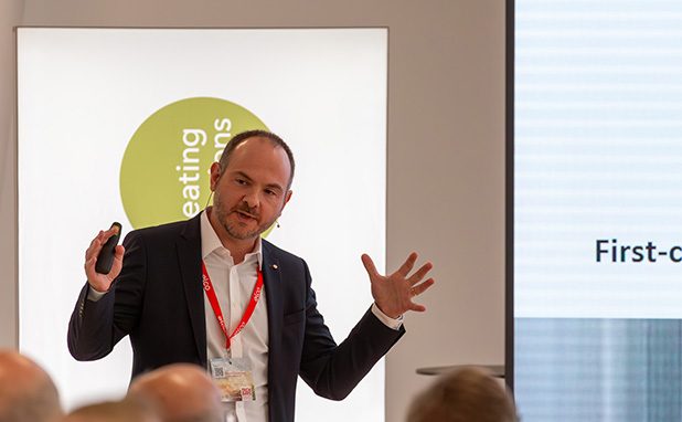 Prof. Dr. Volker Quaschning, Professor für Regenerative Energiesysteme an der Hochschule für Technik und Wirtschaft (HTW) in Berlin, eröffnete das Programm in Hannover mit seinem Impuls-Vortrag „Klima-, Energie- und Wirtschaftskrise: Wie wir von einer schnellen Energiewende profitieren können“. Er unterstrich, dass ausschließlich erneuerbare Energien in Kombination mit hocheffizienten Wärmepumpen den Pfad zu Klimaneutralität ebnen. Quaschning untermauerte mit anschaulichen Grafiken und einem eloquenten Vortrag den dramatischen Temperaturanstieg und warnte davor, dass ohne radikalen Umstieg auf erneuerbare Energien unsere Gesellschaft in ernsthafte Gefahr gerät. Es sei nichts Geringeres als eine Energierevolution vonnöten. Denn eine ausschließlich auf fossilen Brennstoffen basierende Energieversorgung sei bereits bis Mitte des 21. Jahrhunderts ökonomisch und ökologisch unhaltbar. Zugleich betonte Quaschning, dass die Energiewende nur als gemeinsame Kraftanstrengung gelingen kann: Politik, Industrie und Gesellschaft müssten geschlossen handeln, um den Temperaturanstieg zu stoppen – jeder Beitrag zähle. Nur wenn alle mitziehen, könne der Wandel zur klimafreundlichen Energiezukunft rechtzeitig gelingen.
